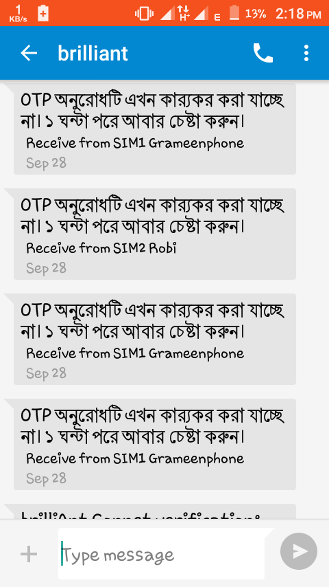 ১. ভেরিফিকেশন sms এ নিচের মত আসলে